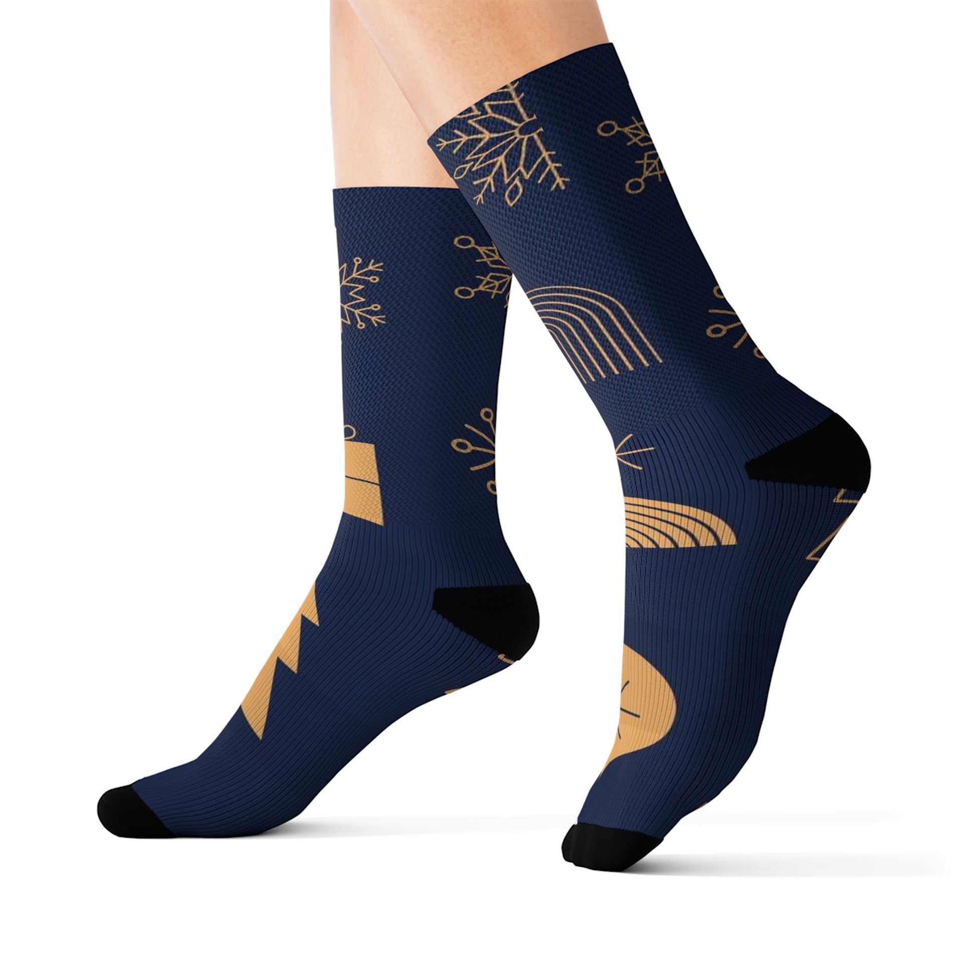 Sublimation socks offer maximum comfort and style. Crafted with 95% polyester and 5% spandex, these socks come in three sizes and feature ribbed tubes and cushioned bottoms.